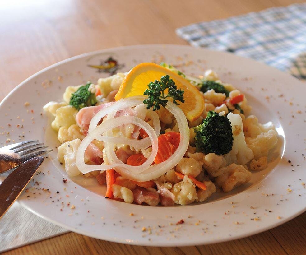 Nockerl Champignon | Speck | Käse (auch vegetarisch möglich)
