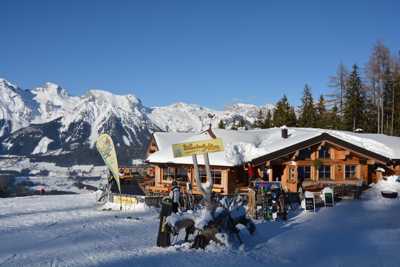 Unsere urige Almhütte liegt direkt am Wanderweg Nr. 50 – nur etwa 1 Stunde Gehzeit von Schladming entfernt. Wer noch weiter hinauf will, erreicht in weiteren 60 Minuten den Gipfel der Planai. Alternativ gelangt ihr auch bequem über Forststraßen ab dem Wieslechnerhof oder von der Mittelstation der Planaibahn bzw. der Mautstraße – jeweils ca. 20 Minuten zu Fuß.