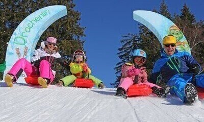 Auf der Piste der Drachenlifte begegnet man großen, farbigen Drachenmasken. Sie laden ein, durch ihr Maul hindurchzufahren, um in die bunte Welt der Drachenfahnen zu gelangen.