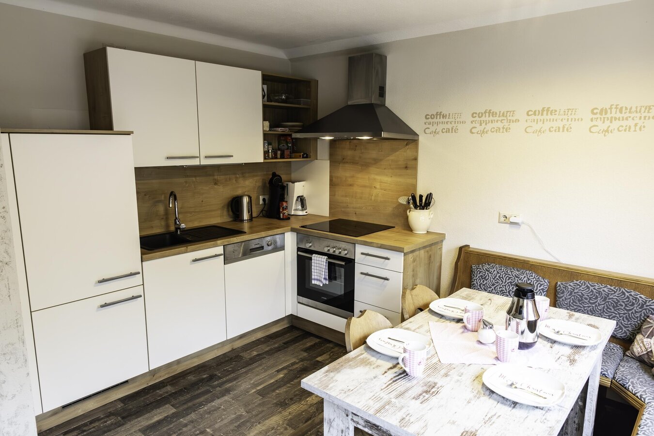 Unsere 90 m² großes "Apartment 1" im Obergeschoss bietet Platz für bis zu 6 Personen. Es verfügt über 3 getrennte Schlafzimmer (jeweils mit Flat-TV) und eine voll ausgestattete Küche mit gemütlicher Essecke. Zwei der Schlafzimmer befinden sich auf einer Ebene, das dritte Schlafzimmer erreicht man über eine Treppe. Die Wohnung verfügt außerdem über ein Badezimmer mit großer Dusche und Blick auf das Dachstein-Massiv. Das WC ist separat. Der kleine Balkon mit Sitzgelegenheit, erreichbar über die Küche, bietet einen Blick in unseren schönen Garten.