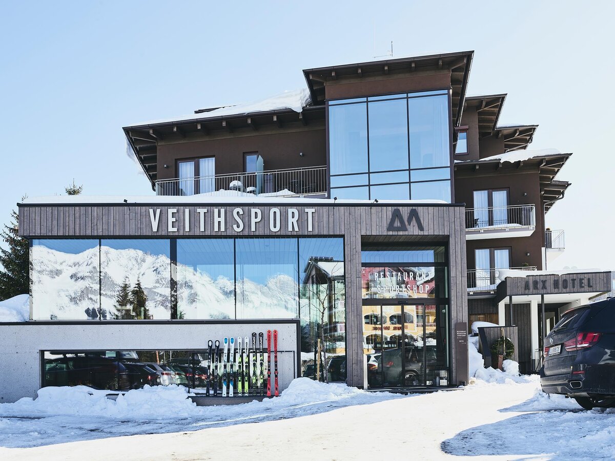 Aufregend. Lässig. Und sowas von VEITH. Das ARX Hotel bietet Ihnen auch einen hoteleigenen Sportshop mit Skiverleih und Skiservice. Freuen Sie sich auf handverlesene Sport-Artikel, Top-Beratung, individuelles Ski-Finishing und Boot-Fitting. Und das Beste: Als ARX Hotelgast bekommen Sie 15 Prozent Rabatt auf Skiservice und Skiverleih, Shop-Produkte und Bootfitting erhalten Sie um 10 Prozent günstiger. Auch bei Onlinereservierungen erhalten Sie 15 Prozent Rabatt auf den Skiverleih.