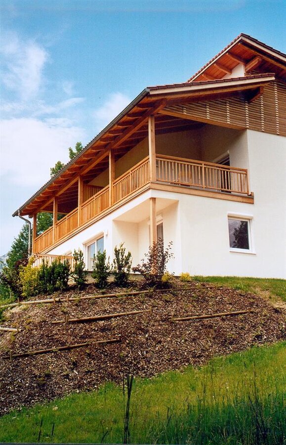 Unsere 4 Appartements (62 - 65 m²) verfügen über jeweils 2 Schlafzimmer, Wohnküche, Bad, WC offenem Kamin und Terrasse (teilweise überdacht).