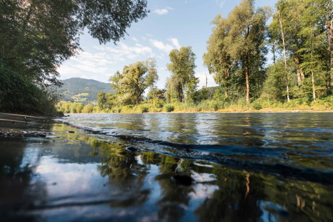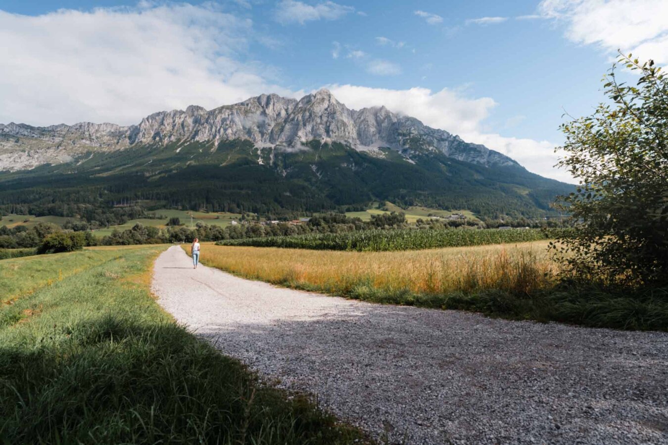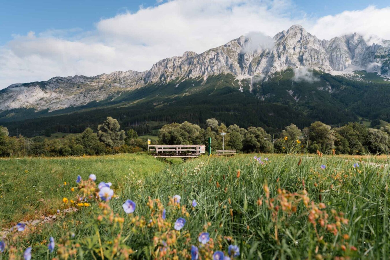 Sonnberg road to the junction to the left - gravel road, downhill to the farm Murberger and downhill to Niederöblarner road - direction Öblarn, after 100 m turn right, cross the railway track and the country road, continue to Enns, upstream along the Ennsuferweg.