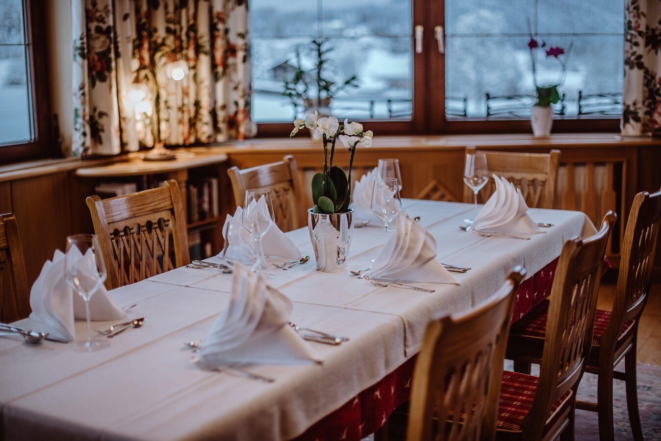 Discover the Ennstalerhof Restaurant (awarded 2 forks – 87 points in the Falstaff Restaurant Guide 2025 and recommended in the À LA CARTE Restaurant Guide 2025) in Ramsau am Dachstein with its magnificent panorama and sun terrace.