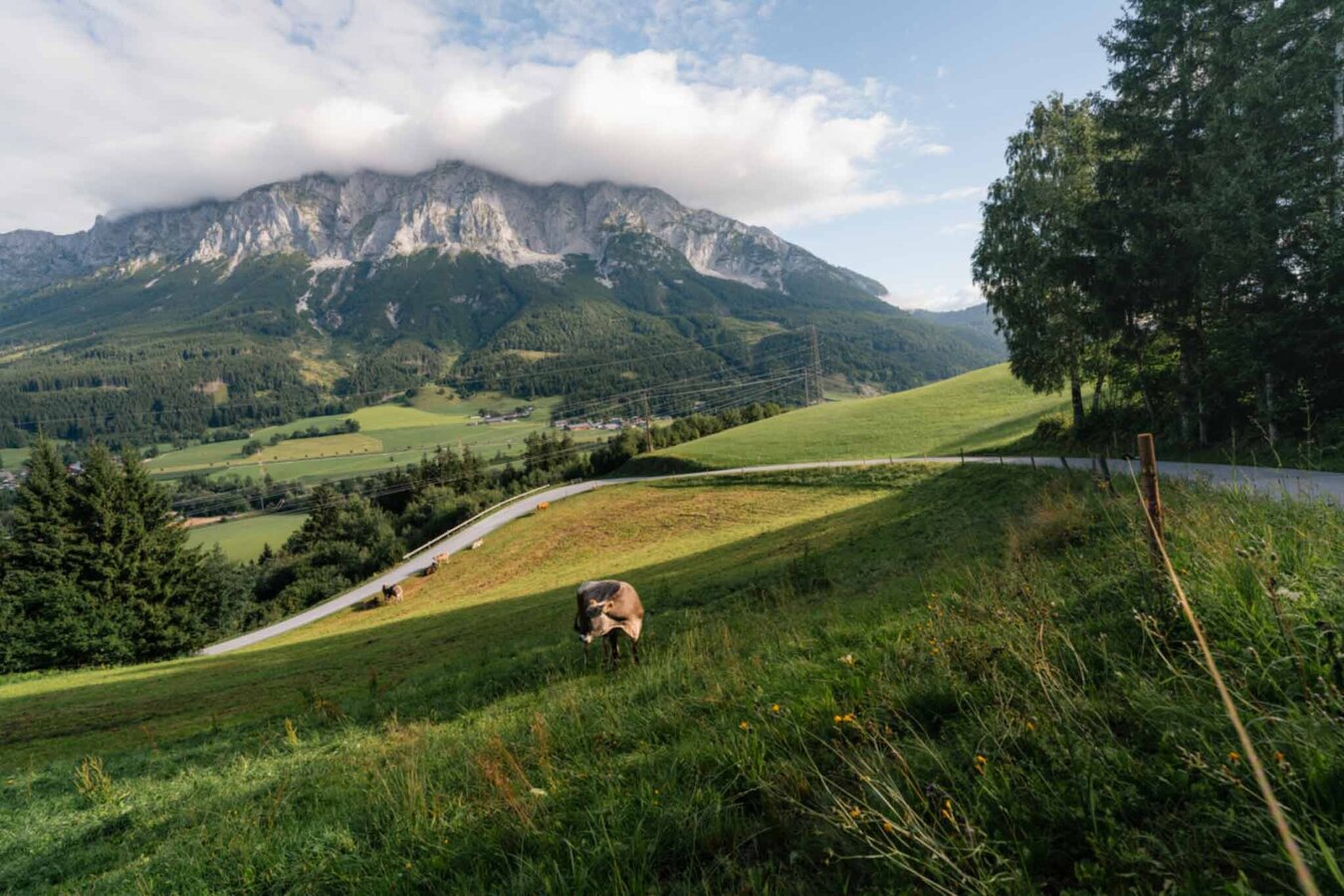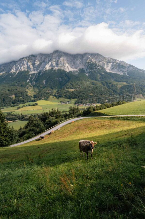 Ascent Gritschenberg up to the Vielrainerkehre - along the driveway to the farm up to the property Vielrainer - turn right in the direction of Niederöblarn.
