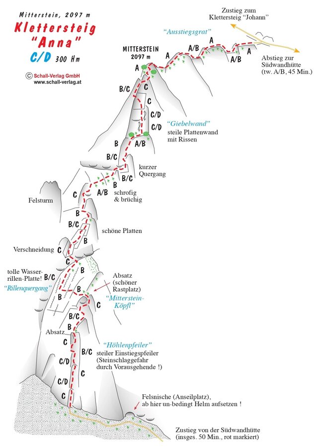 The Via Ferrata Anna is a scenic and enchanting route up to Mitterstein, but it is not to be underestimated. Its entry point is at an elevation of approx. 1.800 m and the top is at approx 2.100 m.