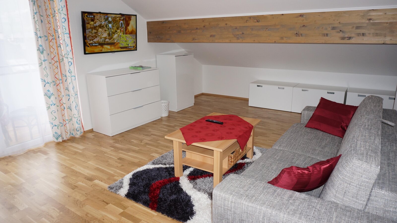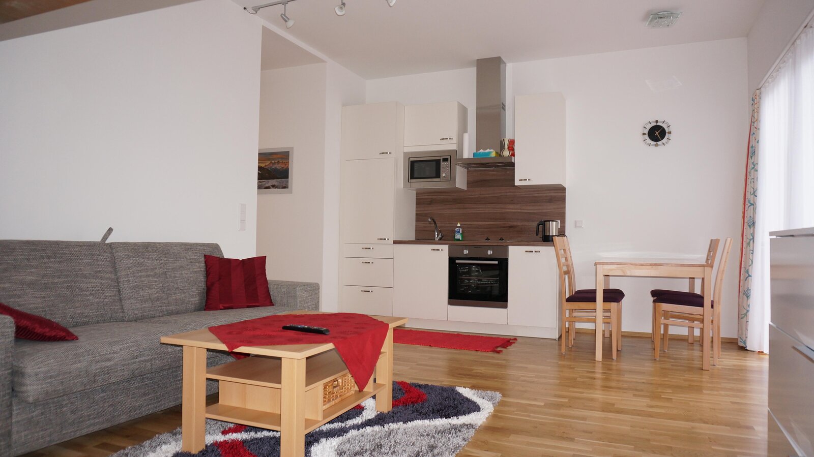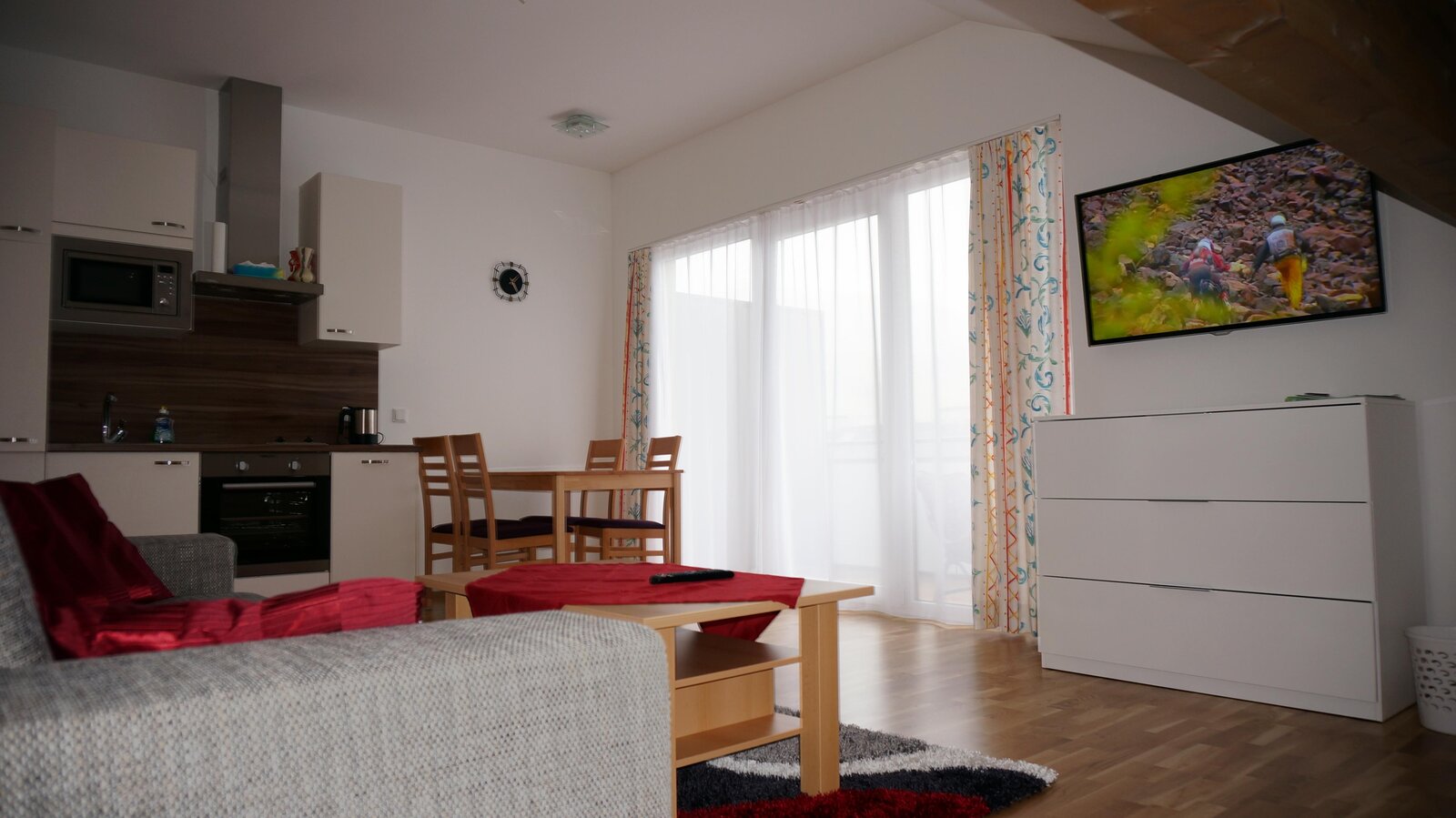 The flat is located on the 3rd floor with its own entrance. The flat consists of a cosy bedroom with double bed, bathroom with shower/WC, anteroom with wardrobe, living room with sofa bed and fully equipped kitchen. In addition to free Wi-Fi internet, satellite TV and radio, the equipment also includes a refrigerator, dishwasher, microwave, coffee maker, tea maker and an electric cooker with oven. The Planai cable car is only a 7-minute walk away. Various supermarkets, restaurants, doctor, indoor swimming pool, tennis hall, the post office, a ski school with ski rental, sports shops and the town centre in general are also only a few minutes away from the house.
