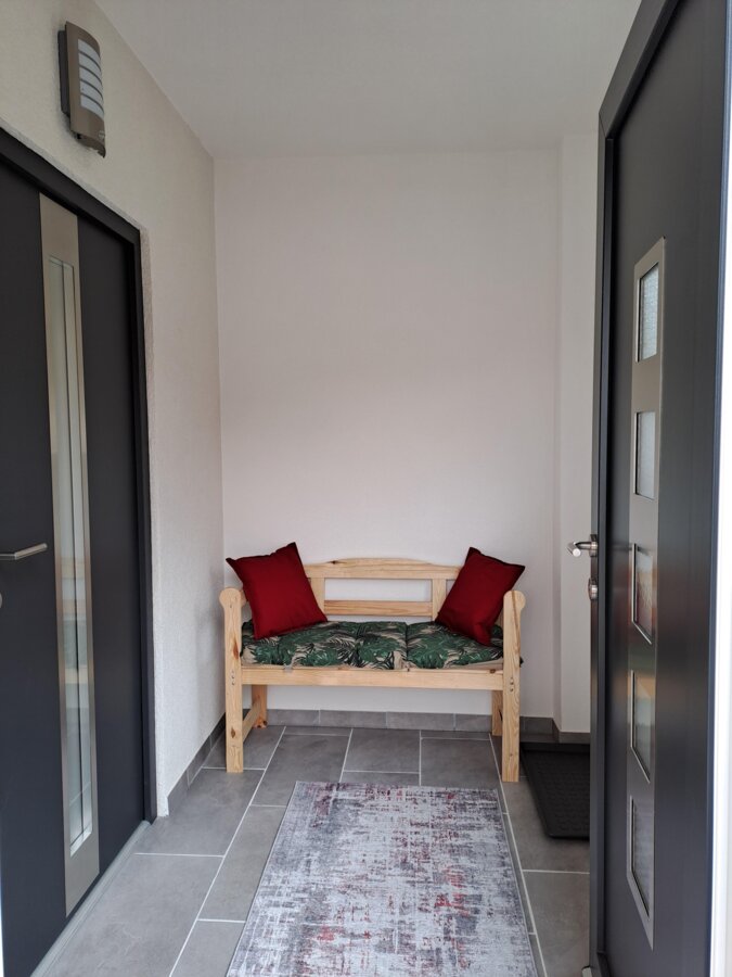 Our cosy holiday home offers space for up to 3 people. It has 1 bedroom, a living area with fully equipped kitchen, sitting area, pull-out couch and flat screen TV (with Netflix) as well as a bathroom with shower and toilet. Towels and bed linen are provided. Free Wi-Fi and a covered parking space are a matter of course. Our sun terrace with garden furniture, barbecue and fire bowl is particularly cosy. As highlight, there is a bench on each side of the house, from which you can enjoy the sun and the view of the local mountains in peace and quiet.
