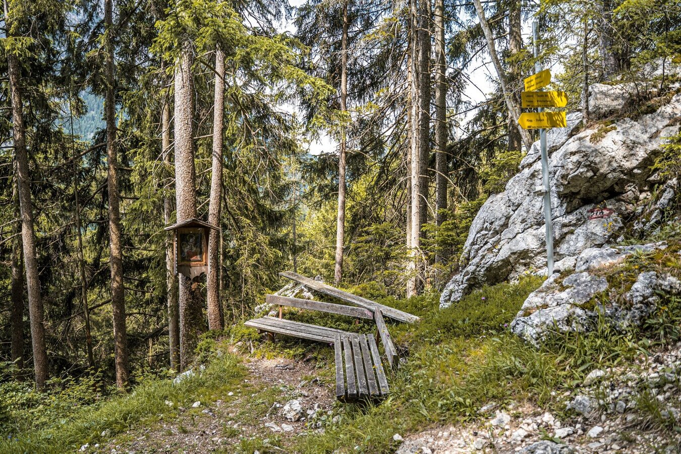 Moderately difficult hike with some steep passages from Pürgg to the Schröflalm and on the Gindlhorn. Wonderful views of Pürgg, Bad Mitterndorf, Wörschachwald and the Multereck await you. The picturesque Way to Marter along the old church path from Gasthof Dachsteinblick to Pürgg completes this beautiful hike. This path used to be used as a path to the church in Pürgg and the deceased were also transported from Wörschachwald to the cemetery in Pürgg, for example. Along the way you will repeatedly come across small wayside shrines that invite you to pause and linger.