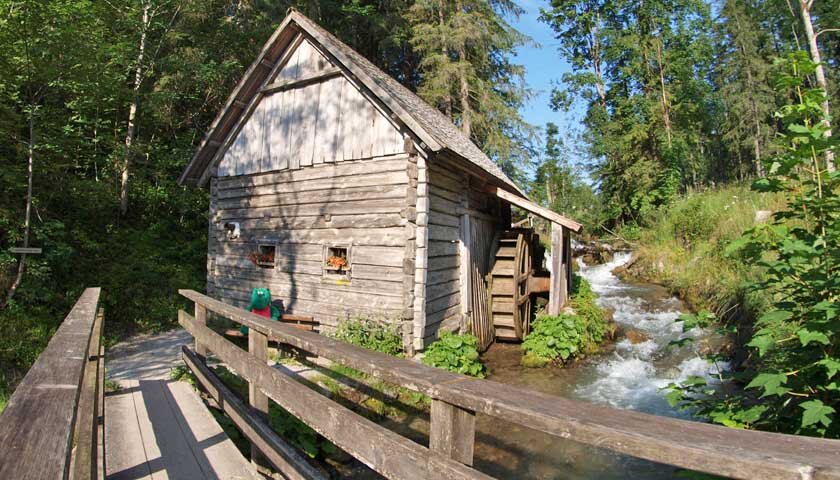 Continue on path #619. After the Grubach, the path branches off and leads steeply and stony downhill in serpentines via the Stangalm to the Silberkarhütte. The hut at 1,223 m above sea level offers you rich organic products from its own organic farm. The rest of the way is different again and entertaining. It goes through the romantic wild water gorge past the Schleier waterfall, over stairs and footbridges down the rushing brook to the lower exit of the Silberkarklamm. Here you now follow the signs in the direction of Ramsau-Ort. Past the fly mushroom snack bar you reach the old mill in Ramsau Rössing. From there you have two options for getting to Ramsau-Ort or your car: