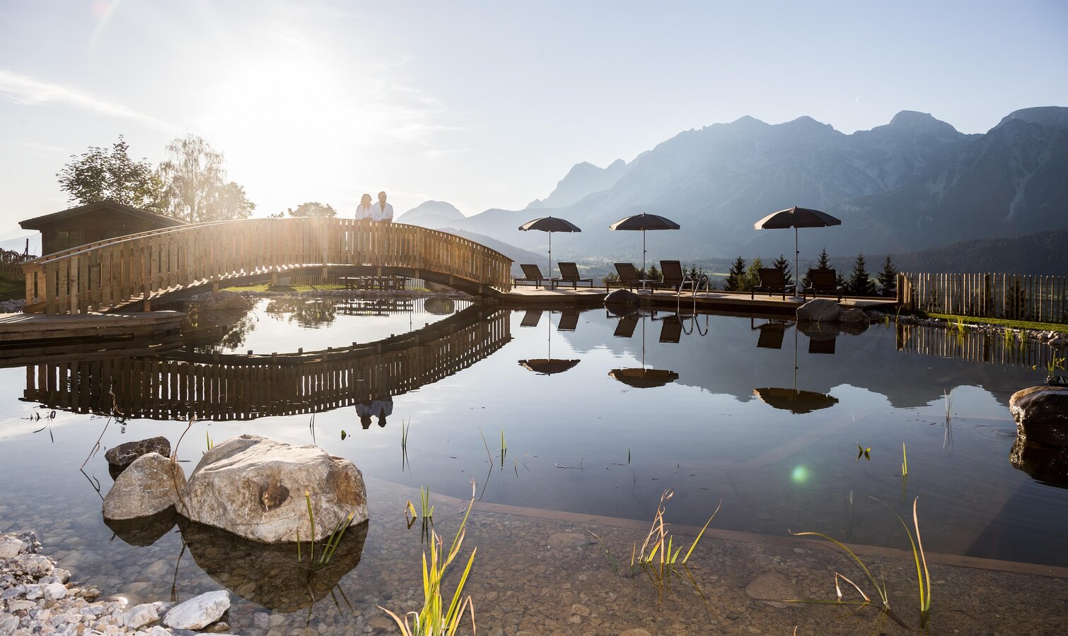 Pampering package: big breakfast buffet, salad buffet, choice of dinner menus, theme nights. Feel-good area with sauna oasis, hotel's own natural swimming pond, big kids’ playing field. Animals such as cats, rabbits, hens, sheep, donkeys, horses... all call our farm home. Family hikes, riding on our horses/ponies, and the many offers included with the Schladming-Dachstein Sommercard make your vacation unforgettable!