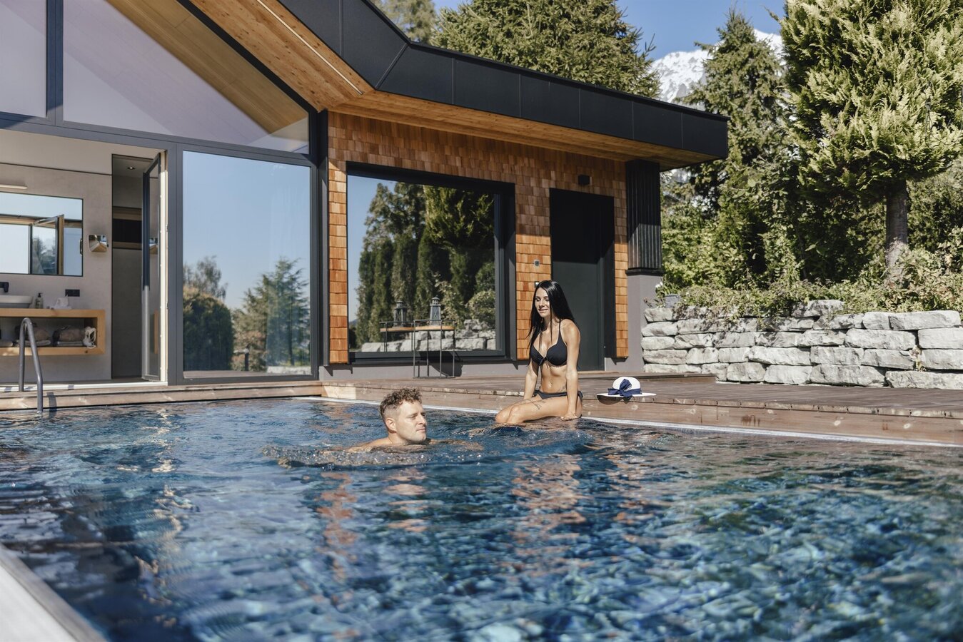 Peace and privacy in the luxurious Chalet Annelies with exclusive year-round heated infinity pool and private panorama sauna - but don't be left alone, because the entire Annelies luxury is of course also available to you in full!
