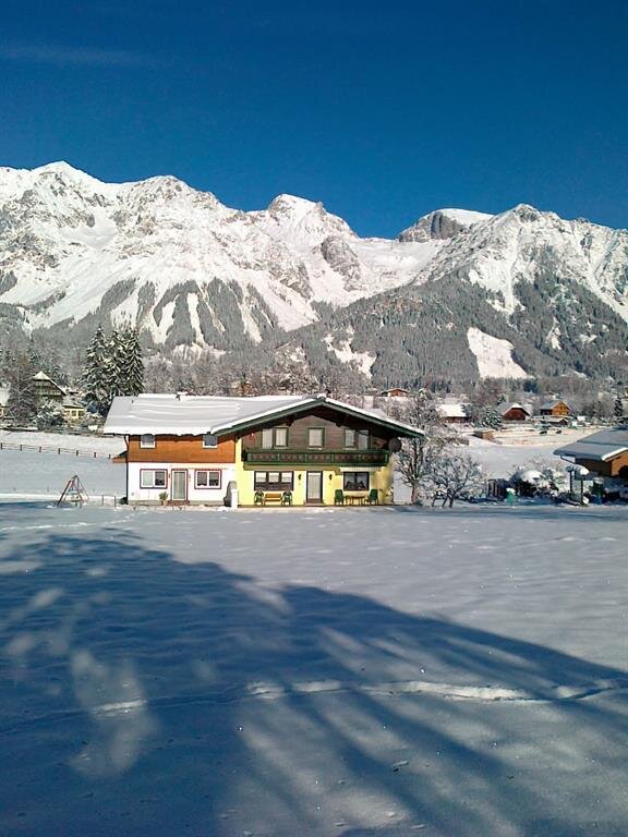 A warm welcome to our non-smoking house Landhaus Leitenegg in Ramsau am Dachstein. Our house, awarded with 3 crystals, is located in a quiet and sunny location in the middle of green meadows in Ramsau-Torf, with free views to the impressive Dachstein south faces. Enjoy the splendid panorama of the Dachstein mountains and the Lower Tauern. The 220 km Ramsau am Dachstein network of cross-country trails, the bike trail and the horseback riding possibilities are right on our doorstep. Also very close are the romantic winter walking paths. The Landhaus Leitenegg has been awarded with the Ramsau Environment Seal, and there are 3 rustic double rooms as well as one single room available, all of them with private bathrooms with shower/WC, Sat-TV, water boiler, and balcony. For our guests, there is a fridge available, as well as a ski storage room, and a covered car park. To start well into the day, fortify yourself enjoying the rich breakfast in our breakfast room and lounge. Spend an active day out in our beautiful holiday region Ramsau am Dachstein and Schladming-Dachstein with activities such as walking, hiking, climbing, mountain biking, or simply strolling. In winter, the family friendly ski region Ramsau with Kali’s Adventure Ski Runs, and the ski area amadé amongst which are the resorts Hauser Kaibling, Planai, Hochwurzen and Reiteralm attract their winter guests with a great offer. The ski resorts can be reached within about 15 minutes by car. The all-year-round ski area on the Dachstein glacier, to be reached within about 25 minutes, offers pure skiing pleasure. We are already looking forward to your stay and to welcoming you to our Landhaus Leitenegg in Austria. Yours, Landl family