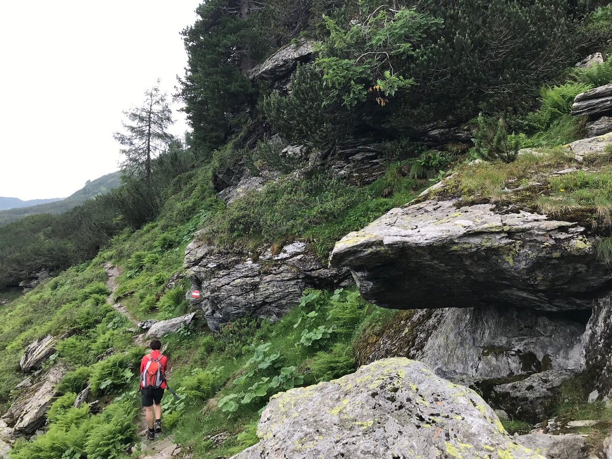 From here you walk back downhill, uphill towards the Goldbachscharte, from where you turn left downhill back to the mountain village.