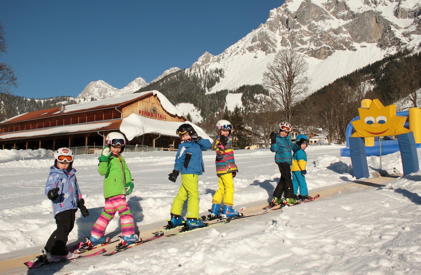 Through Ramsau’s ideal slopes and our school’s professional support, our guests learn to ski and playfully strengthen their skillset. In the protected beginner’s area, young and old can take their time to try out their first turns. For our young guests, we will take all the time to make the course playful and varied so that the kids quickly and safely learn to ski. Our 2 children’s slopes, Kalis Zwergennest in Ramsau-Ort and the Bergkristallift, are ideal for beginners and advanced skiers.