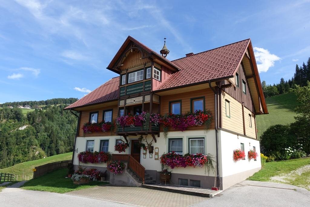 In the middle of the Schladming-Dachstein region lies our mountain farm at 960m above sea level on the Gumpenberg. You will get to know Styrian hospitality with us, the Moosbrugger family, on the day of your arrival. Our traditional farmhouse has a total of 2 double rooms and for our families we have a spacious four-bed room each with shower and toilet. In the morning you can expect a fortifying breakfast with homemade jams and fruit juices.