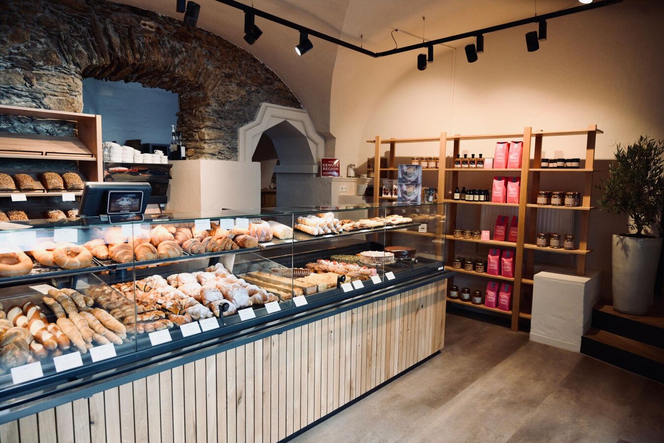 Also the flair and the architecture of the castle, which is reflected in 3 guest rooms with 68 seats. From the winter garden you have a perfect view to the “Schlossplatz”. Everyone comes by here. For bread, pastries and coffee to go, for breakfast, for lunch, for afternoon coffee & cake or for wine at the end of the day.