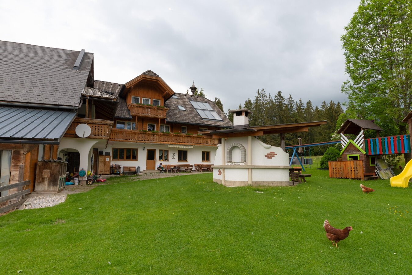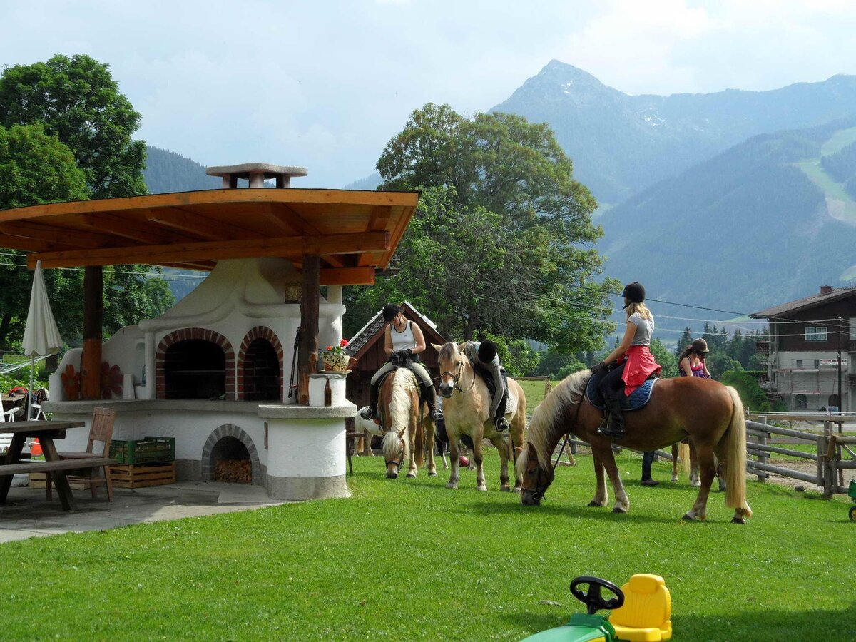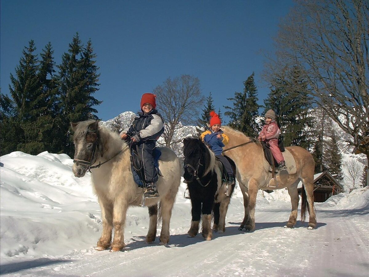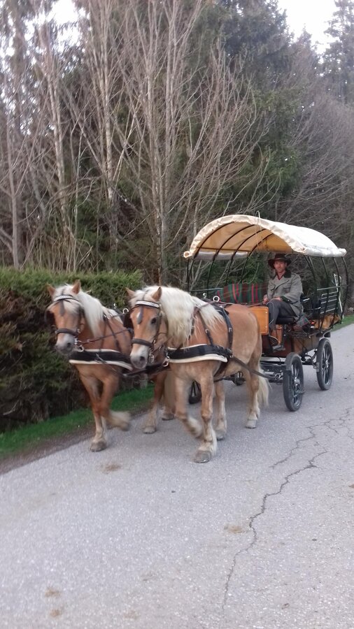 At the Steinbauer farm, there is plenty to offer in every season. Especially for families and children, there is a lot to discover. Starting from the large playground with tower, slide, trampoline, sandbox, table tennis, etc., to our small garden house or go-karts, as well as some meadows to let off steam, play ball, or build snowmen. We also have a playroom and plenty of books, cards, and board games, as well as video and Wi-Fi in case the weather isn't so accommodating. Children and adults are also welcome to help with the daily barn chores and take care of our many animal residents, such as cats, rabbits, chickens, ducks, cows, calves, or pigs. Our 4 ponies and 2 Haflinger horses are looking forward to daily grooming. They can also be ridden at our on-site riding arena or along the surrounding riding trails. A special highlight, of course, is a horse-drawn sleigh or carriage ride with the head of the house personally. You see, there is really something offered for the whole family at Steinbauer.