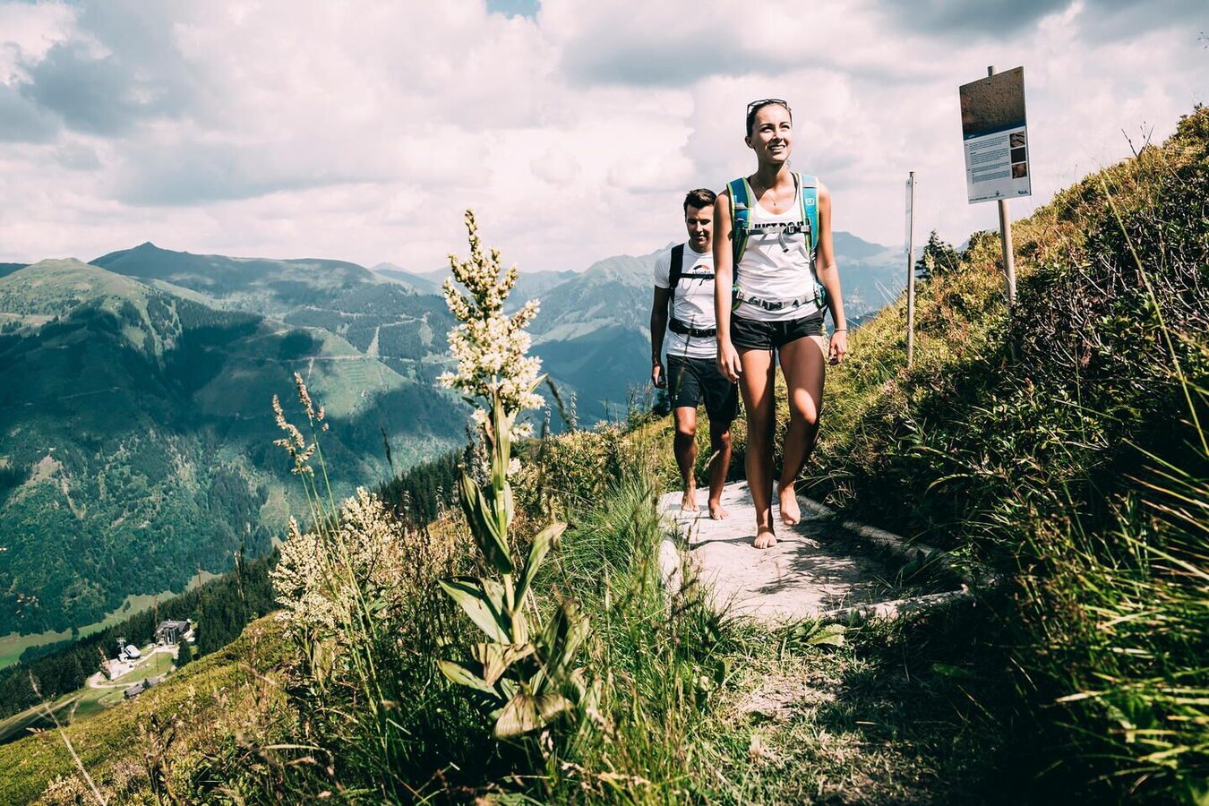 During this hike over a length of 700 m you can feel the mountain with your feet and enjoy a wonderful foot reflex massage. Spruce cones, wood chips, bark mulch, mud and earth hollows, stone types from granite slabs to torrent boulders, wood in all variations or the natural alpine pasture soil - everything is integrated. The trail leads from the HochSEEsitz in flat serpentines with a total of 19 stations directly to the summit of the Riesnerkrispen at 1,922 m.